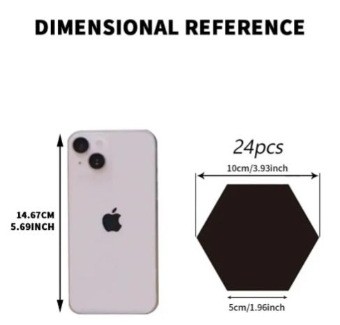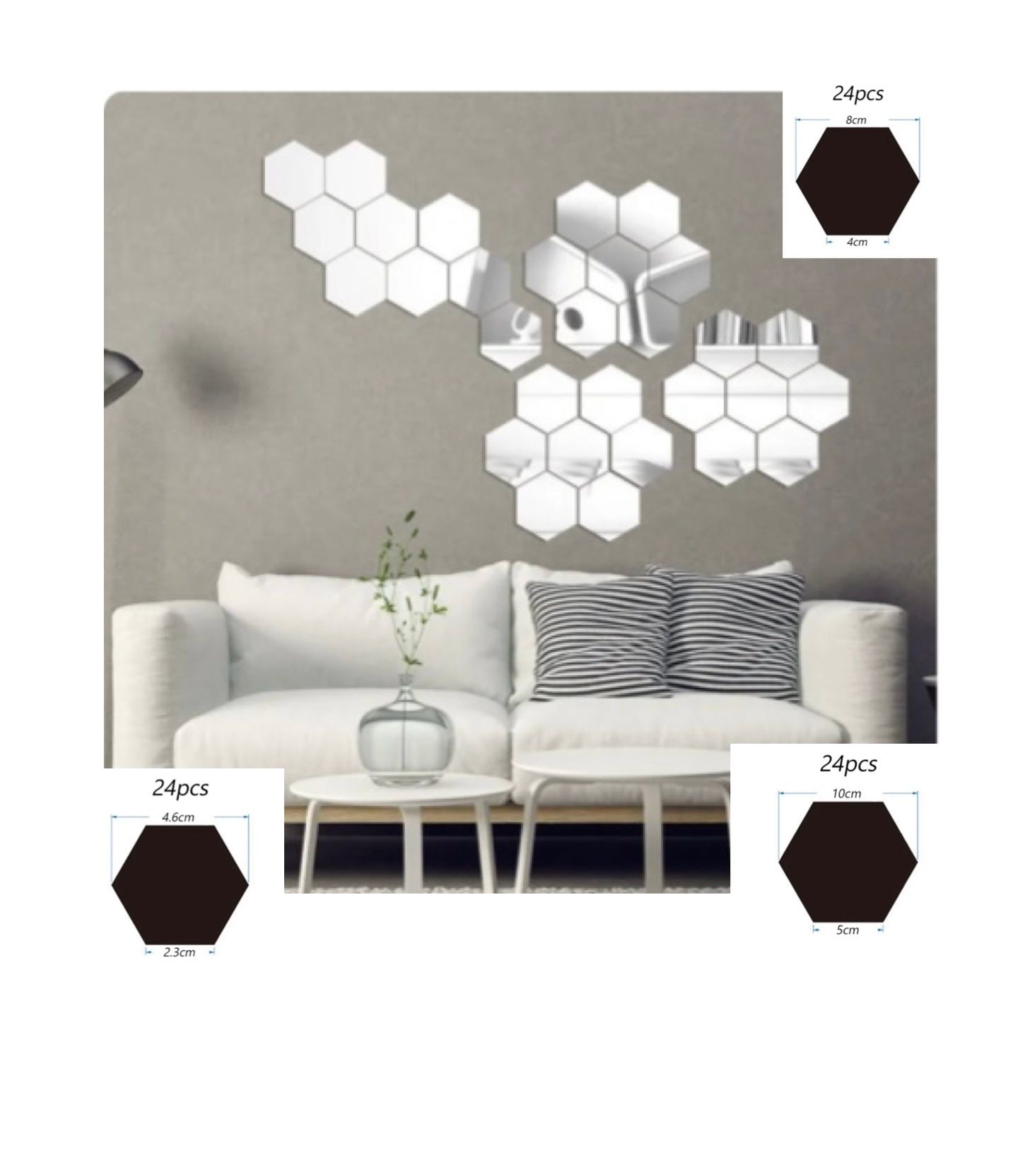 This product is a set of 24 acrylic stickers that can be applied to any smooth surface, including walls, doors, and mirrors. The stickers are designed in a hexagonal geometric shape and come in a variety of sizes to choose from, making it easy to customize your home decor.
