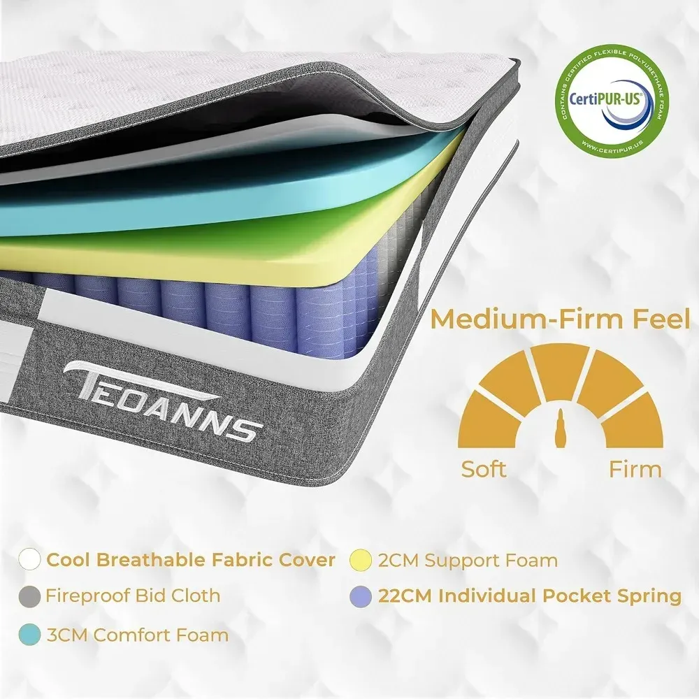 Teoanns full mattress has a high-end and comfortable knit fabric with a comfortable and breathable surface. Its CertiPUR-US certified memory foam and individually pocketed inner springs hybrid construction which develops a balance between firmness and softness, created extra support and more releasing pressure points. Teoanns full mattress bringing a great relief for those who are suffering from back and neck pains.